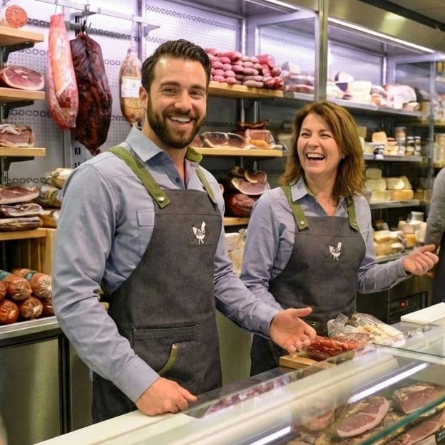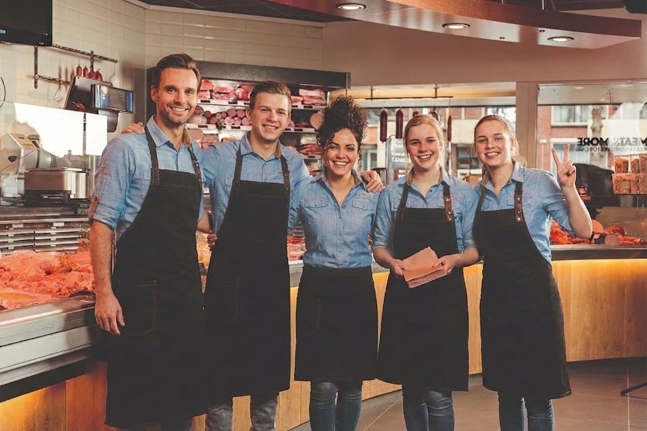Sterke en praktische kleding voor intensief gebruik op de werkvloer van de slagerij.